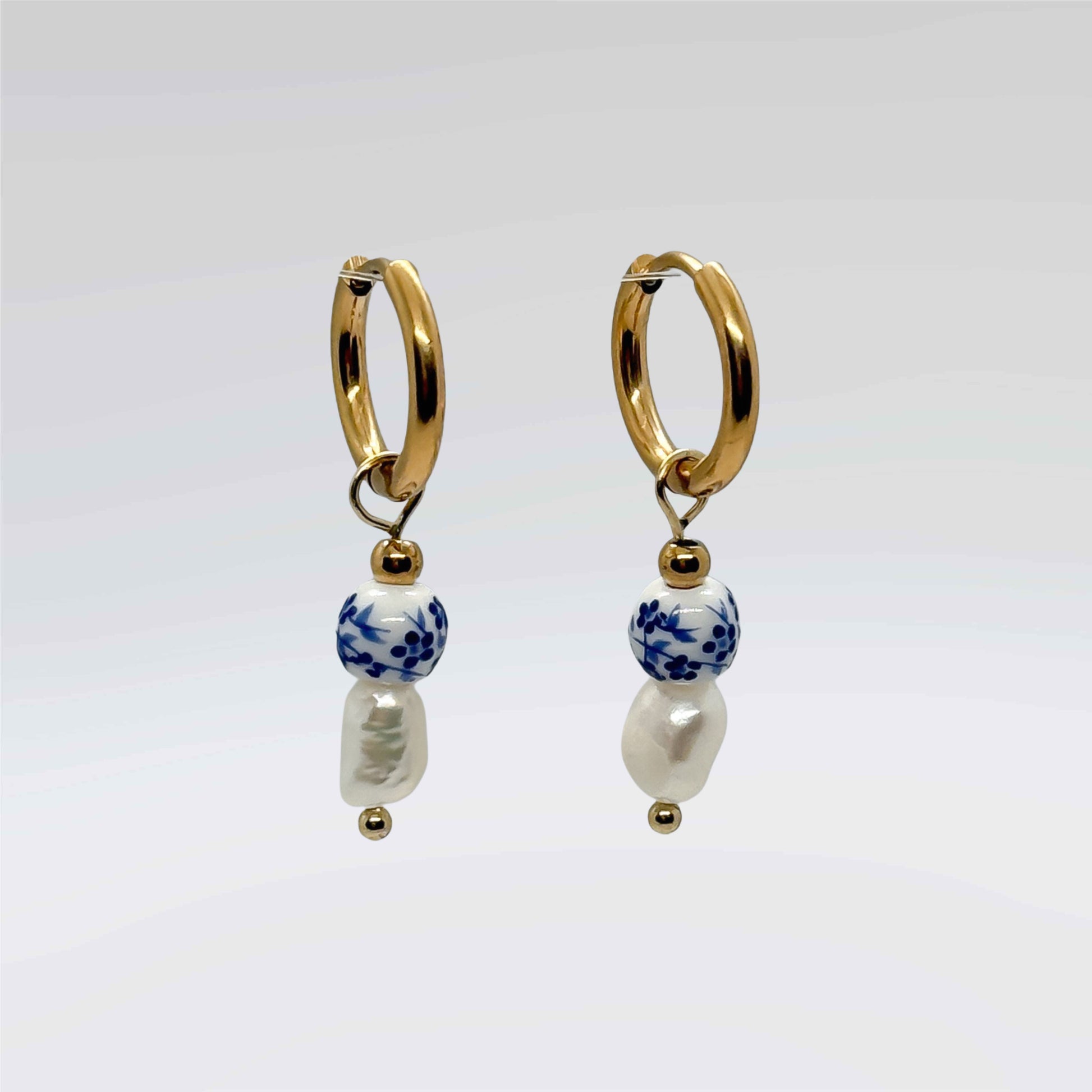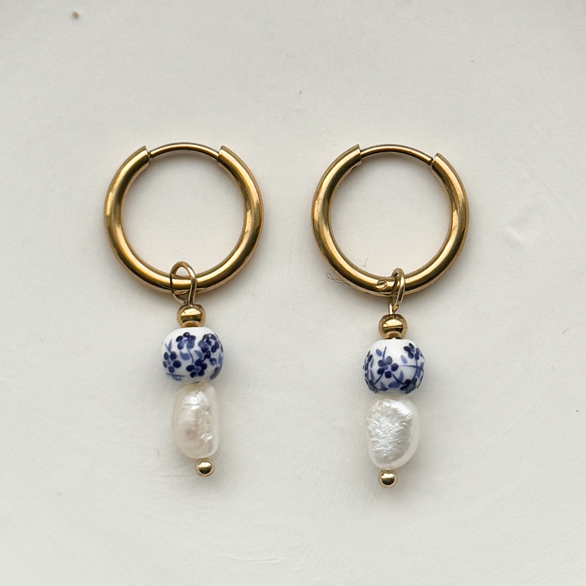 Get ready to elevate your earring game with these timeless blue and white porcelain earrings. The stainless steel gold hoops add a touch of modern flair. Wear them solo or pair them with other piercing favorites for a one-of-a-kind look.