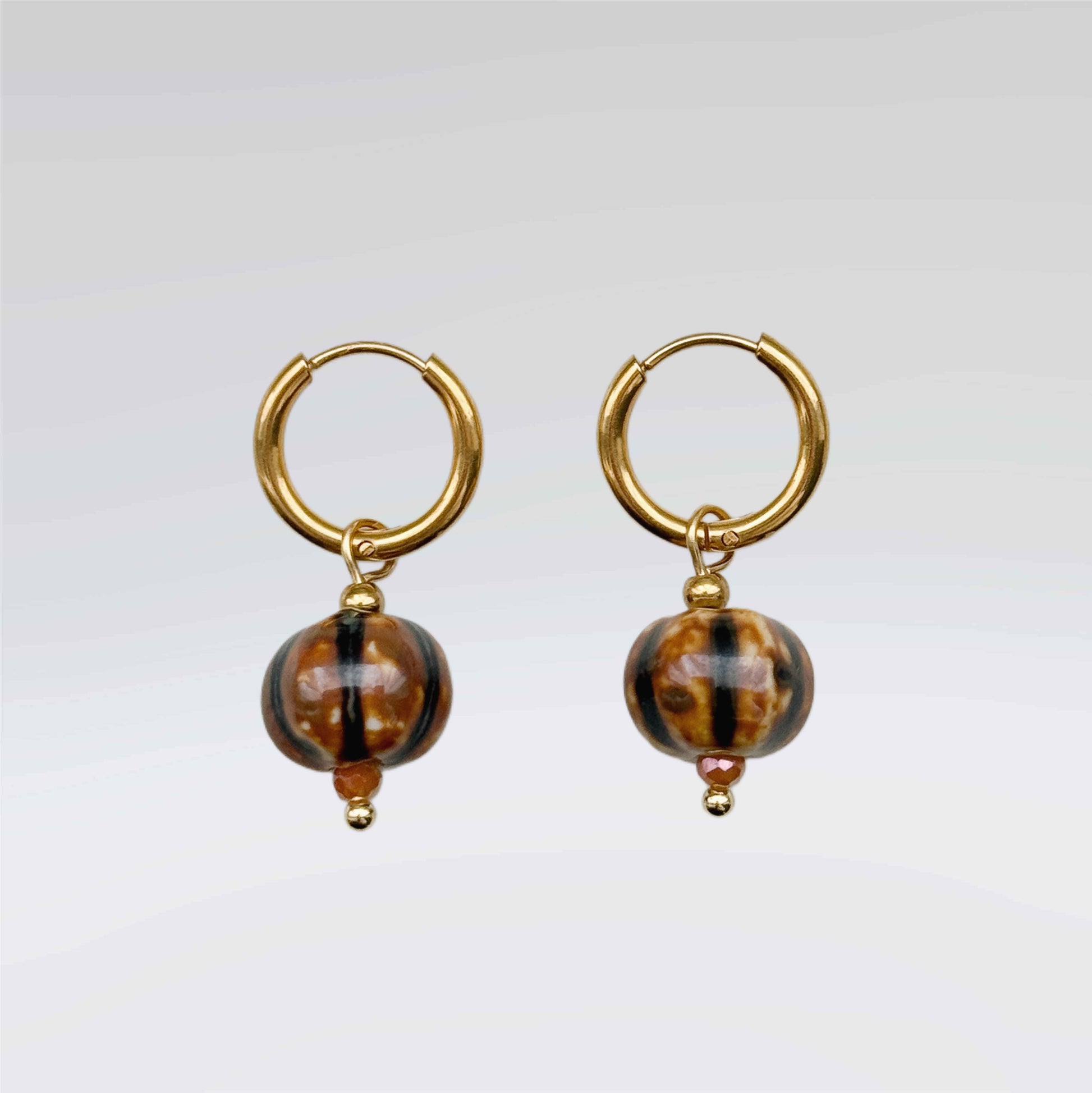 Add a touch of earthy charm to your look with the Autumn Earrings. Featuring a playful collection of ceramic beads in rich shades of dark brown, these earrings bring natural warmth and texture to any outfit.
