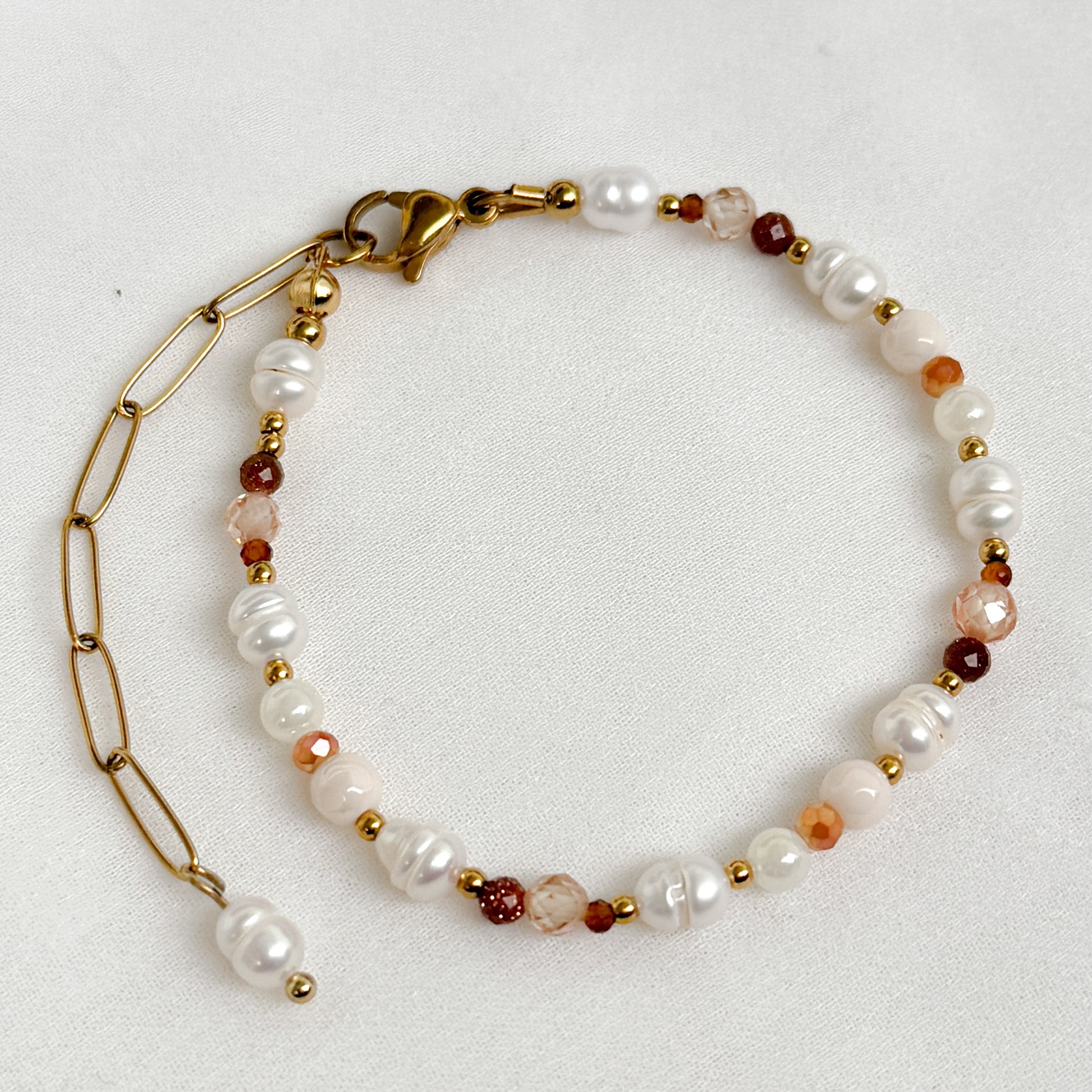 Brighten your day with the Honey Bracelet—a playful mix of smooth freshwater pearls, colorful natural stones, and sparkling zirconia beads. This lively combination brings a touch of sparkle and fun to your wrist, making every outfit shine with cheerful elegance.