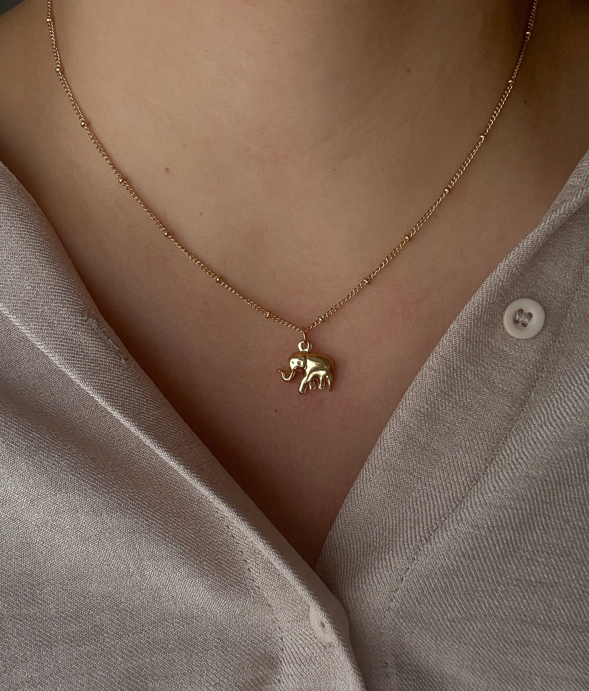 Add a touch of playfulness to your outfit with our cute Elefant Necklace. This small necklace features a charming elephant design, making it the perfect accessory for any animal lover.