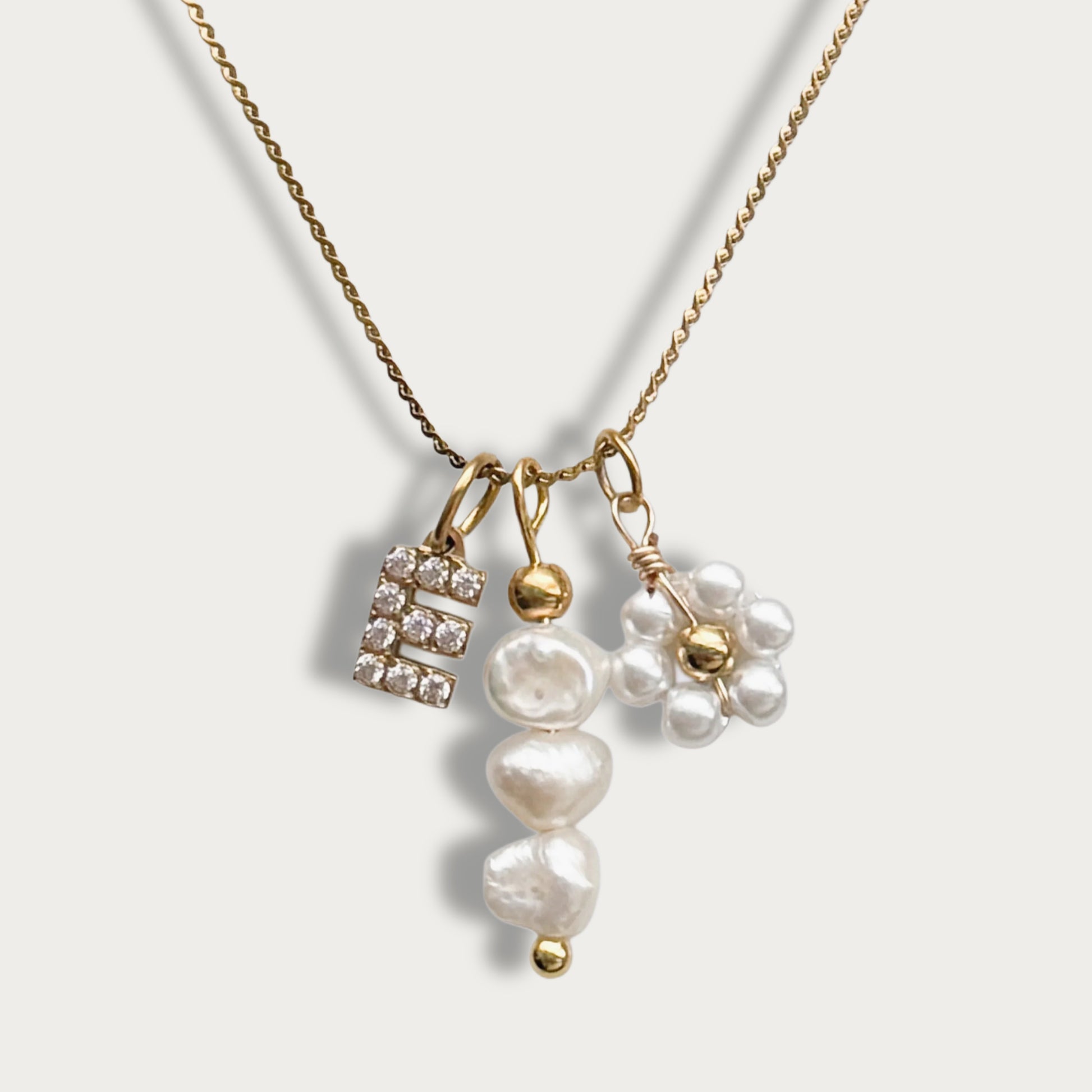Add a touch of charm (and a splash of personality) to any outfit with our personalized letter necklace. With a delicate drop pearl and a playful flower charm, this necklace is the perfect accessory for any occasion.