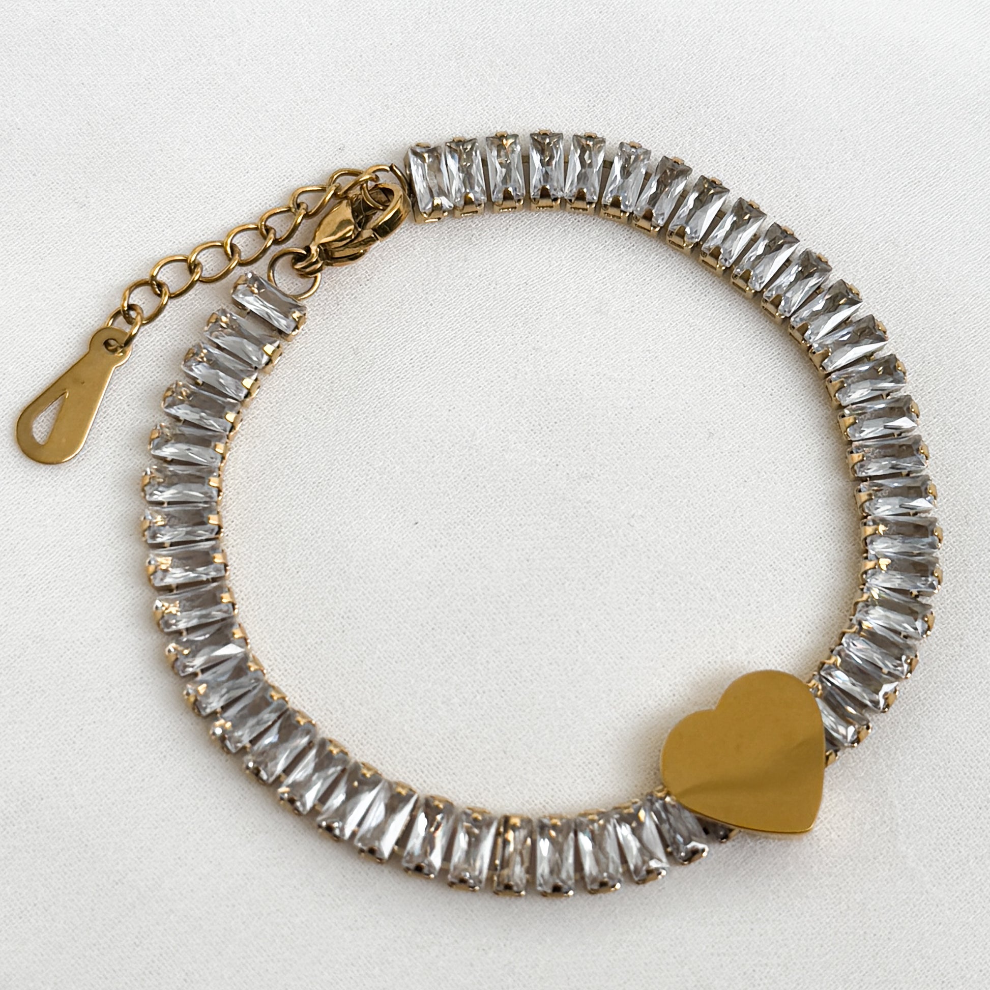 Add a touch of sparkle with our Shine Heart Bracelet! With its stainless steel design and shiny heart charm, this bracelet is both durable and eye-catching. Perfect for any occasion, it's the perfect accessory to show off your love.