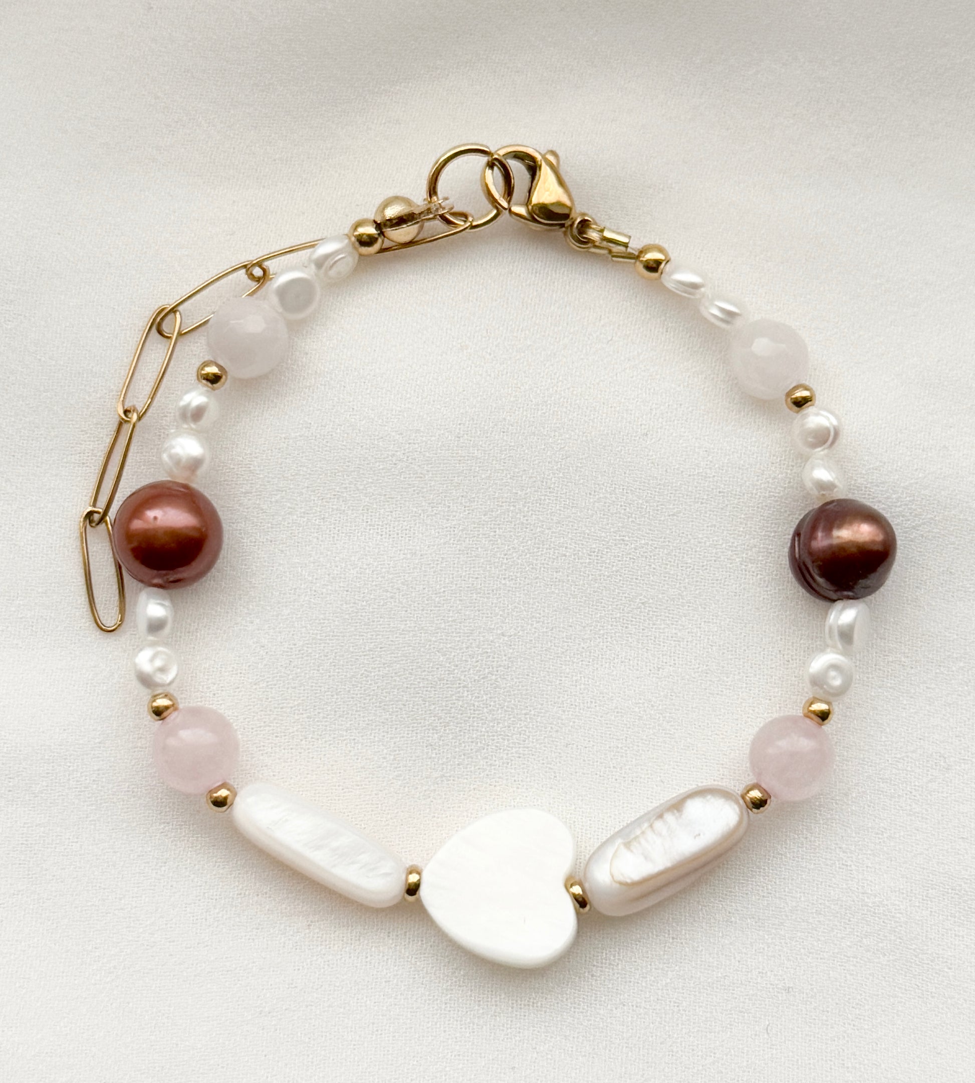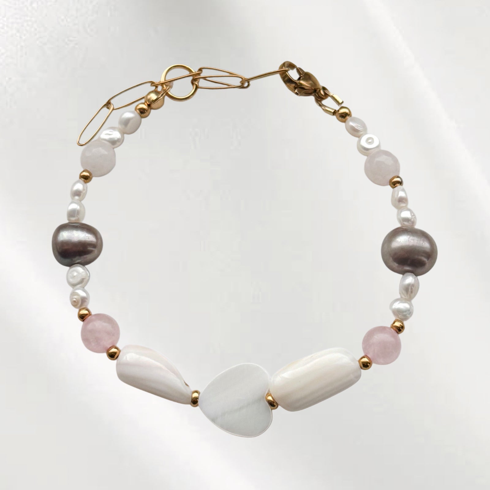 Feel the love with our Sweetheart Bracelet! Featuring a big shell heart bead and two big freshwater pearls, each bracelet has a unique design. Bring some beachy vibes to your look.
